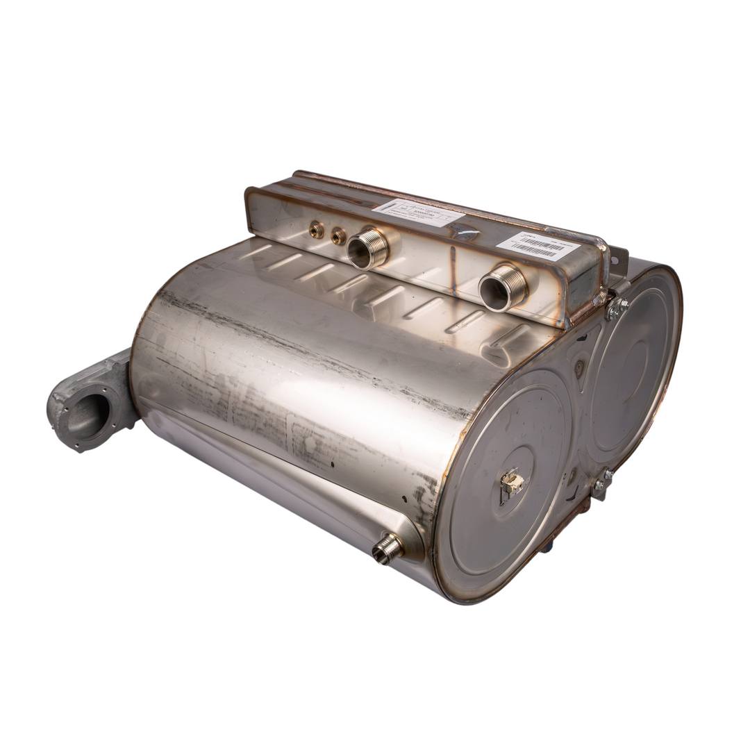 Передает тепловую энергию сжигаемой в камере сгорания газовоздушной смеси теплоносителю посредством теплопроводности. Альтернативное название - монотермический теплообменник.